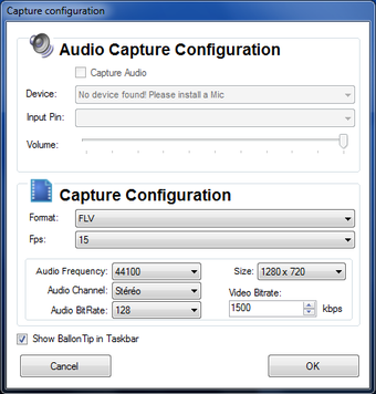 In een keurig configuratiemenu kies je de resolutie van het filmpje en verander je eventueel andere technische specificaties. Beschik je over een microfoon, dan voeg je bovendien eenvoudig je eigen stem toe aan de screencast. Vrijwel alle tests met Free Screen To Video zijn uitstekend verlopen: de enige smetjes zijn het mislukken van opname in wmv-formaat en de foute positie van de muis bij hoge resolutie-opname in het avi-formaat.